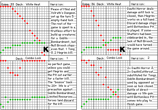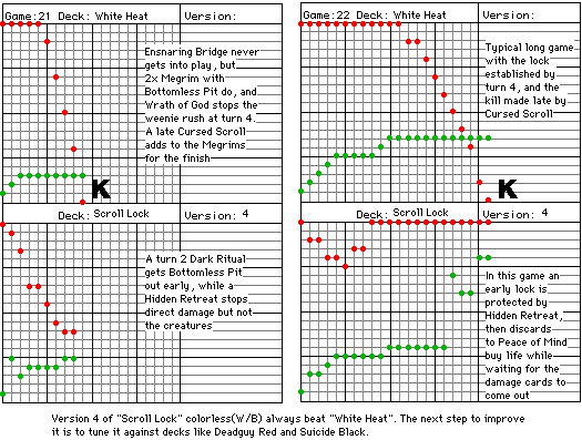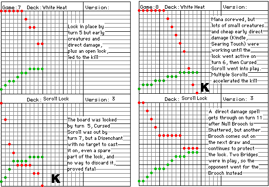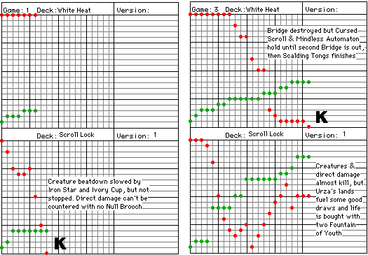 "White Heat" was the test deck again, and lost every time. The range of card